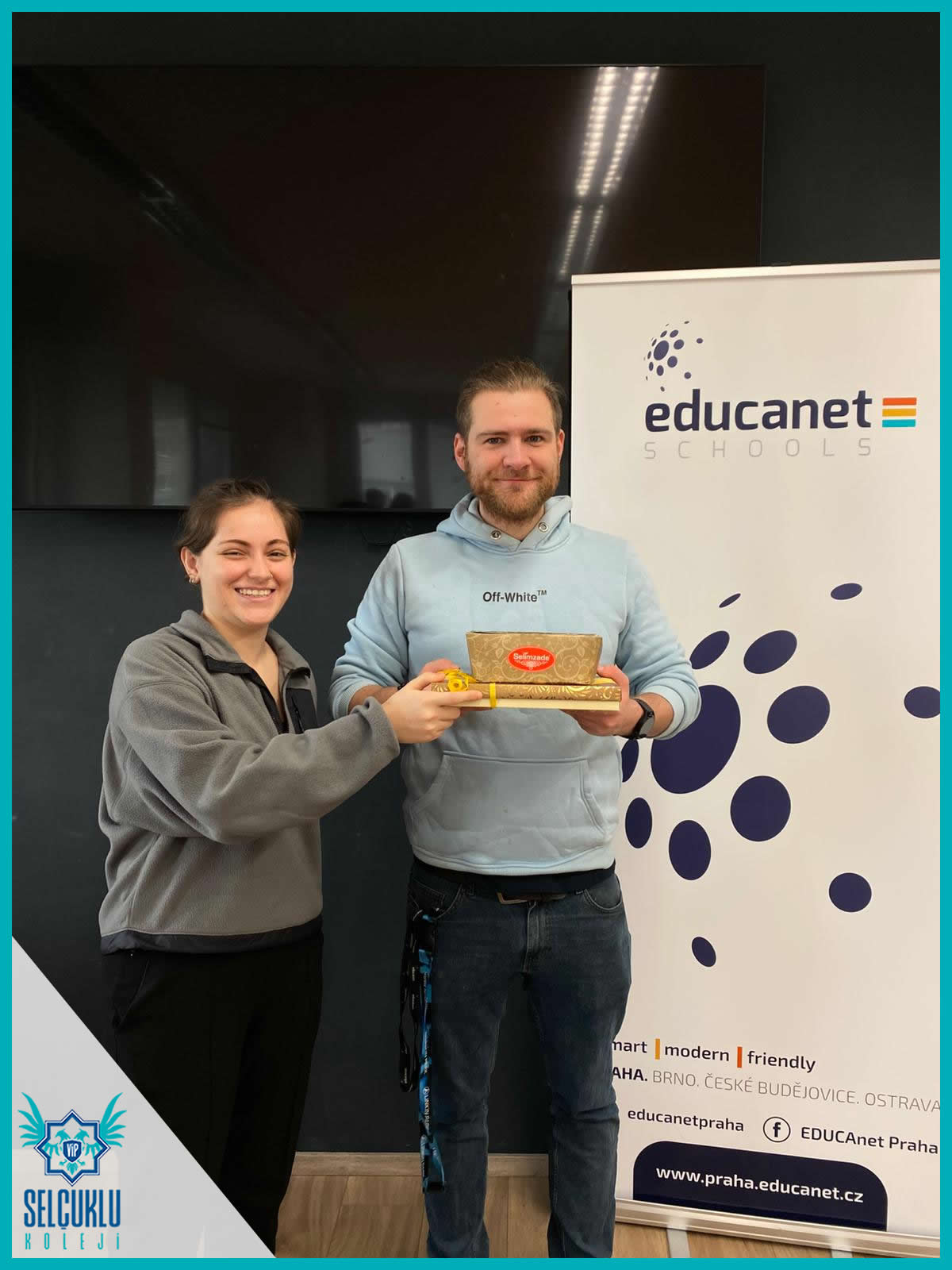 Günün ilk bölümünde öğrencilerimiz, Çekya’da “gimnazyum” olarak adlandırılan ve fen liselerine öğrenci yetiştiren, yabancı dil ağırlıklı eğitim veren Edukanet okulunu ziyaret etti. Prag’da altı farklı şubesi bulunan ve yabancı dil öğretmen kadrosunun büyük bölümünü Amerikalı eğitmenlerin oluşturduğu bu prestijli okulda öğrencilerimiz; derslere katıldı, sınıf ortamlarını gözlemledi ve yabancı öğretmenlerle tamamı İngilizce gerçekleşen mülakat ve sohbetlerde yer aldı.
