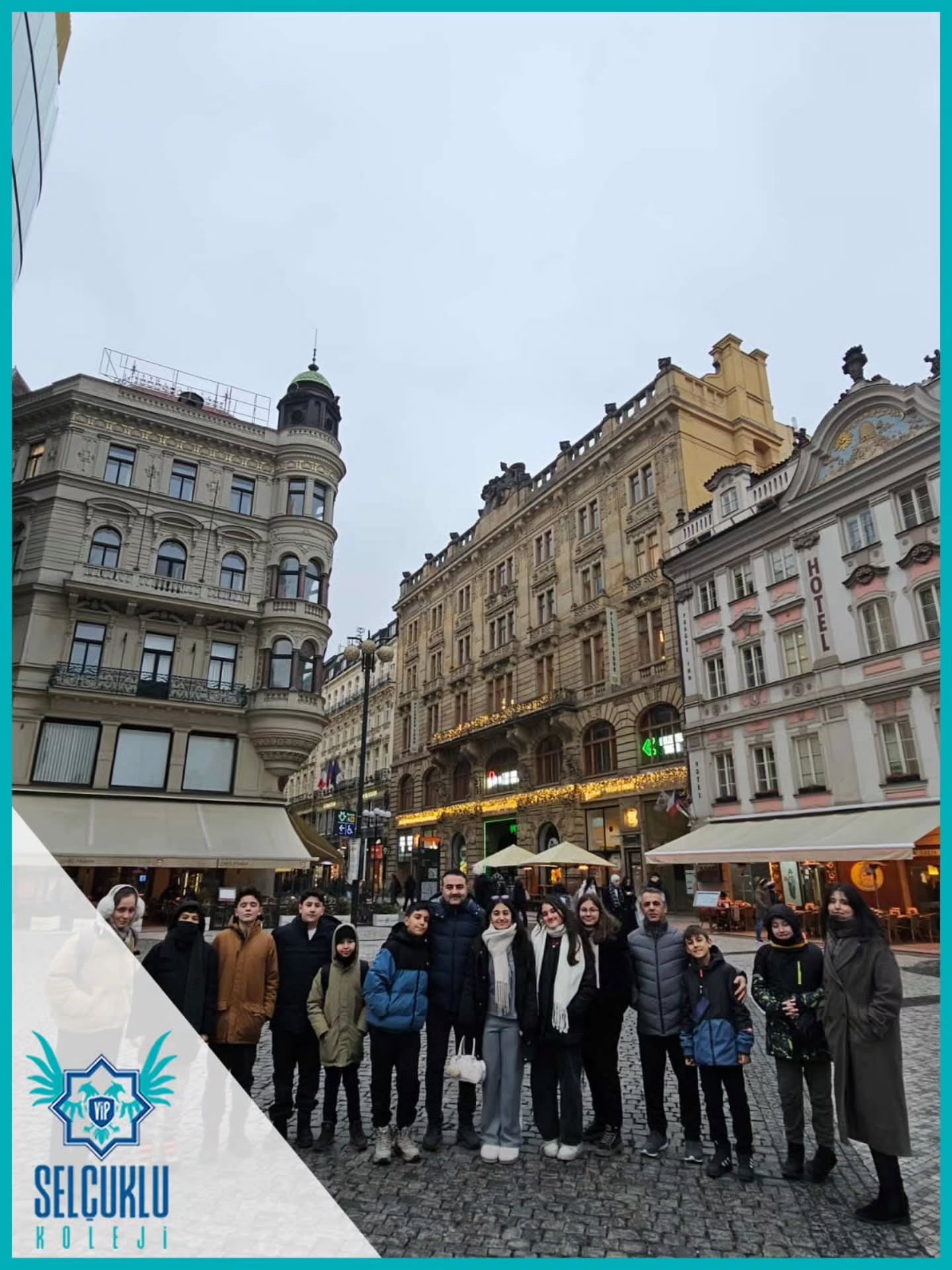 gibi şehrin simge noktalarını yerinde görerek, Orta Çağ’dan günümüze uzanan Prag tarihini mekânlar üzerinden tanıma fırsatı buldu. Tarihi meydanlar ve köprüler eşliğinde yapılan bu yürüyüşler, öğrencilerimiz için hem öğretici hem de ilham verici bir deneyim oldu.
