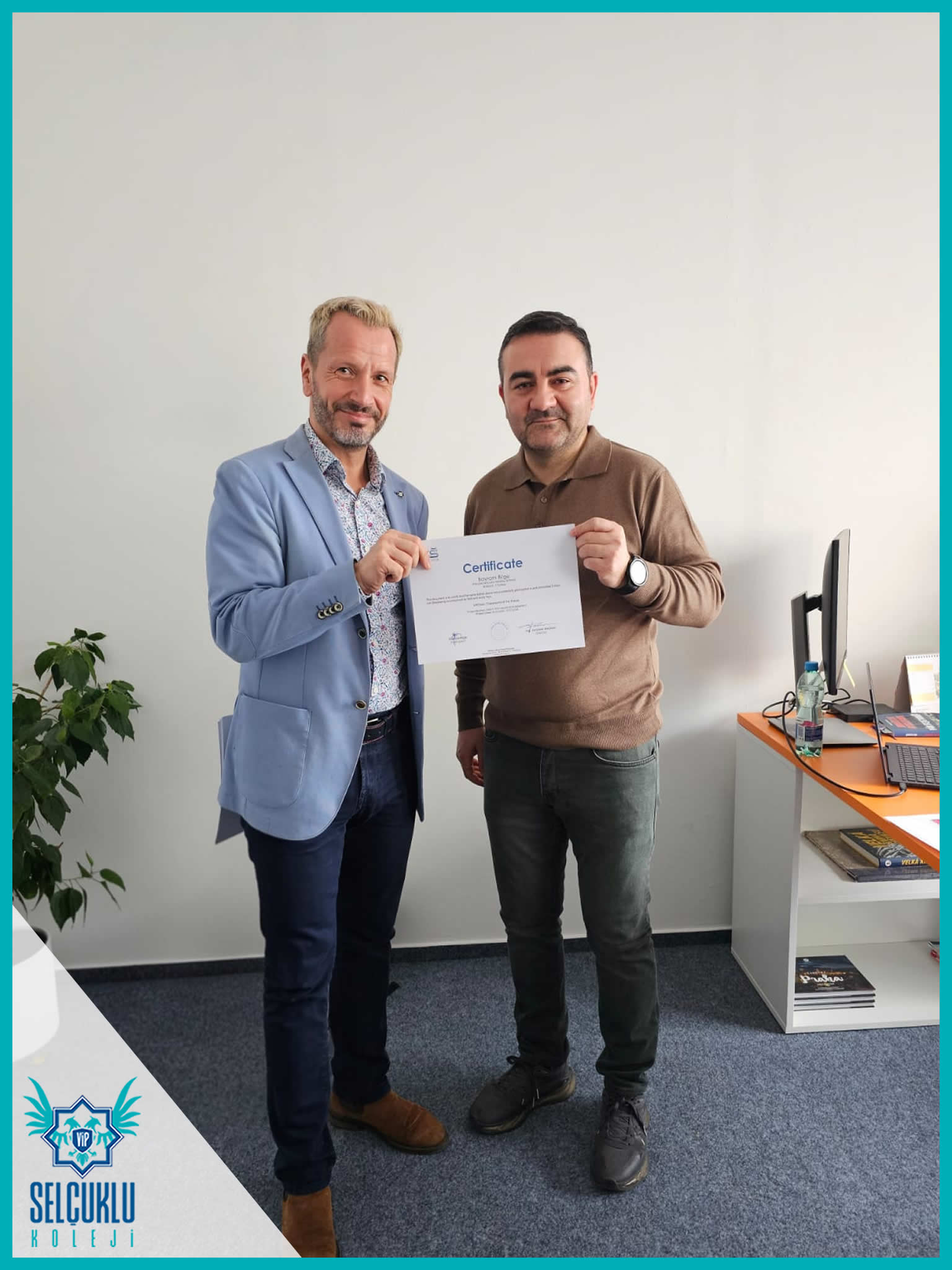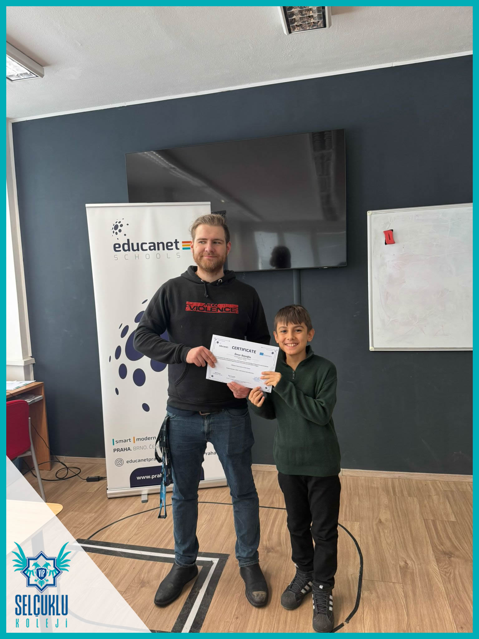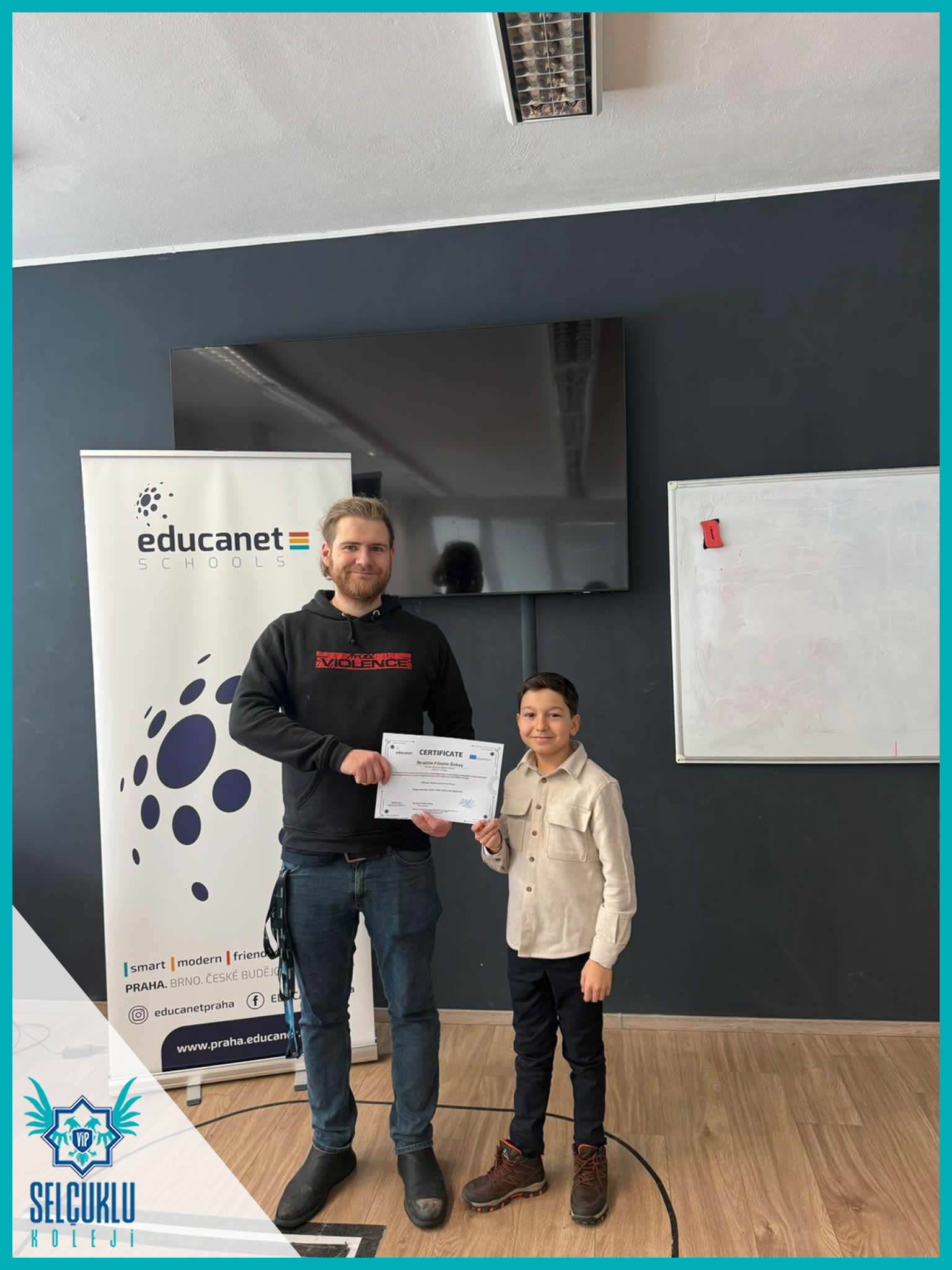 Sabah saatlerindeki okul gözlemlerinin ardından, grup hareketliliği kapsamında Edukanet okulunda görevlerini tamamlayan öğrencilerimiz ve refakatçi öğretmenlerimizle birlikte Erasmus+ sertifika törenimizi gerçekleştirdik. Uluslararası bir öğrenme sürecinin somut bir çıktısı olan sertifikalar, öğrencilerimiz için büyük bir gurur ve motivasyon kaynağı oldu. Sertifika töreniyle birlikte, emek verilen bir sürecin başarıyla tamamlanmış olmasının mutluluğunu hep birlikte yaşadık.
