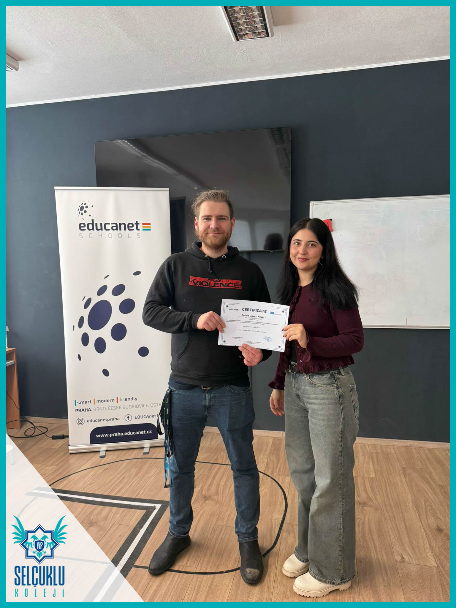 Çekya’nın Prag kentinde gerçekleştirilen Erasmus+ Öğrenci Grup Hareketliliği kapsamında yürütülen tüm faaliyetler başarıyla tamamlanmıştır. “VRClass: Classrooms of the Future” adlı proje çerçevesinde programa katılan 10 öğrencimiz, eğitim temelli etkinlikler, okul ortamında öğrenme faaliyetleri ve kültürel paylaşımlarla desteklenen 5 günlük yoğun ve nitelikli bir öğrenme süreci deneyimlemiştir. Programın sonunda öğrencilerimiz, Erasmus+ hareketliliğine ait katılım sertifikalarını almaya hak kazanmıştır.