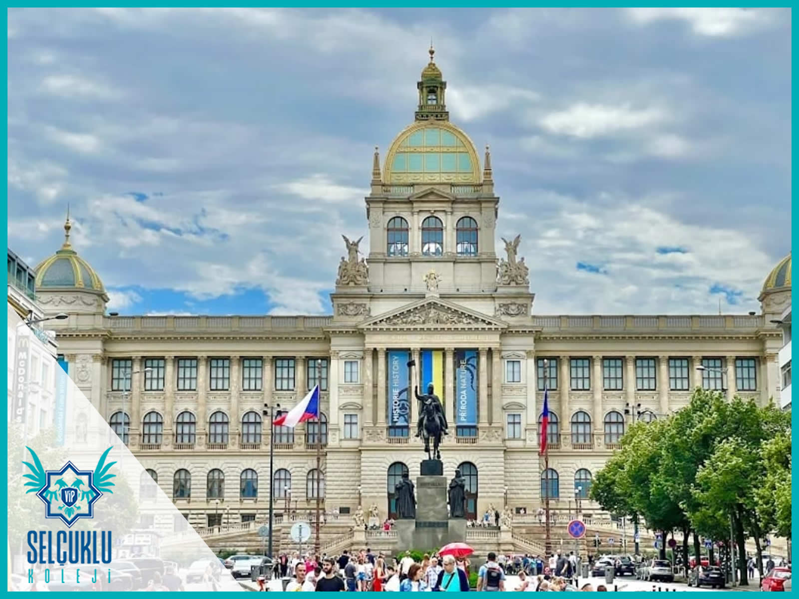 Öğleden sonra ise rotamızı, Prag’ın en önemli kültür ve tarih duraklarından biri olan Prag Ulusal Milli (Tarih) Müzesi’ne çevirdik. Bu müze, adeta bir zaman tüneli gibiydi. Ortaçağda kullanılan kıyafetler, günlük yaşamda yer alan araç-gereçler, dönemin yazılı eserleri ve tarihsel belgeler; öğrencilerimizi geçmişle doğrudan temas ettirdi. Sanal gerçeklik gözlükleriyle gerçekleştirilen deneyimler sayesinde öğrencilerimiz, yalnızca tarihi görmekle kalmayıp, tarihin içinde olma hissini yaşadılar.